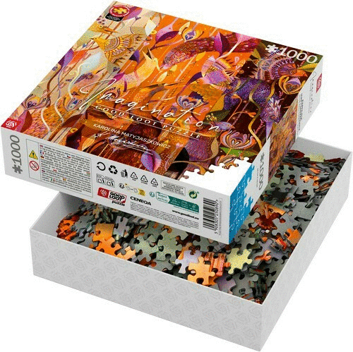 Puzzle Jacek Szleszyński "The Gift" illusztrációja alapján, 1000 darabos.Jacek Szleszyński a boroszlói National Higher School of Visual Arts-on végzett. Multidiszciplináris művészként egyszerre aktív a festészetben, a digitális grafikában, az illusztrációban, az animációs filmekben és az interaktív alkalmazásokban. A filmjei és az interaktív alkalmazásai a világon számos helyen bemutatásra kerültek, több helyen bezsebelve a legnagyobb nemzetközi díjakat. A stílusa magába foglalja a szürrealizmust és a mágikus realizmust, kombinálva a természetes világ, a fantasy, a mitológia, a városi legendák és az összeesküvéselméletek témáit.